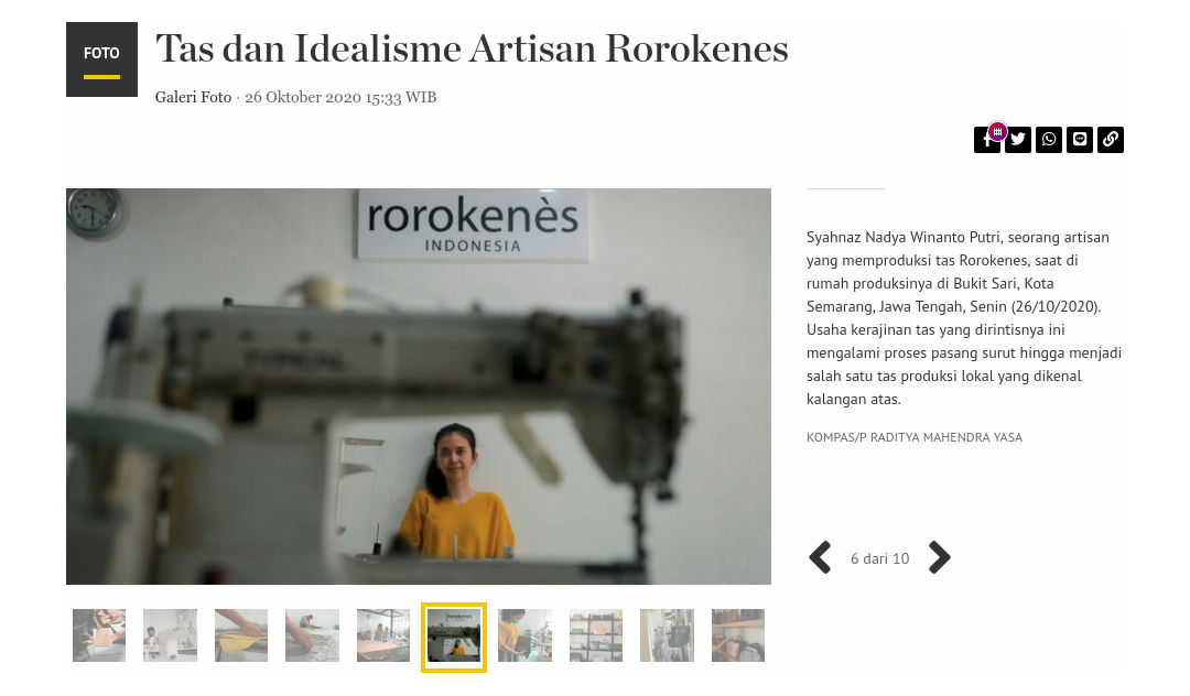 Beberapa waktu lalu, Kompas.id meliput Rorokenes Indonesia. Liputan bertajuk “Tas dan Idealisme Artisan Rorokenes” ini terbit pada tanggal 26 Oktober 2020 dan ditampilkan dalam bentuk galeri foto yang apik.