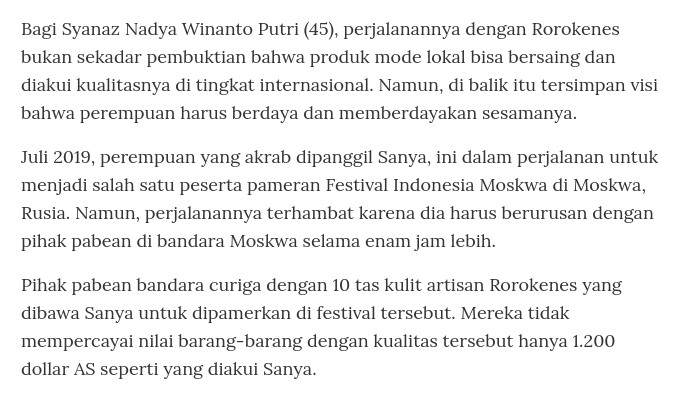 Kliping pemberitaan Rorokenes di media Kompas.id dengan judul Syanaz Nadya Bergaya dan Berdaya dengan Rorokenes pada tanggal 15 Juni 2021.