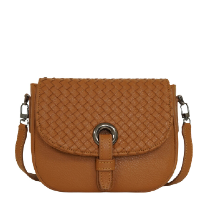 Tas selempang dengan anyaman kulit sapi pada bagian flip sebagai penutup yang dikunci dengan klip magnet. Interior dilapisi kain suede Terdapat kantung terbuka dan kantong ritsleting. Disertai tali kulit panjang lepas pasang yang dapat disesuaikan ukurannya.