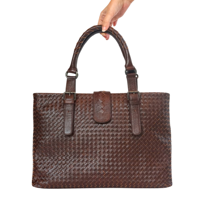 Messenger bag dengan anyaman kulit sapi pada eksterior yang dikunci dengan ritsleting dan klip magnet. Interior dilapisi poliester dengan kompartmen laptop yang dapat memuat hingga 14 inci dan disertai kantung dalam, dan kantung ristleting.